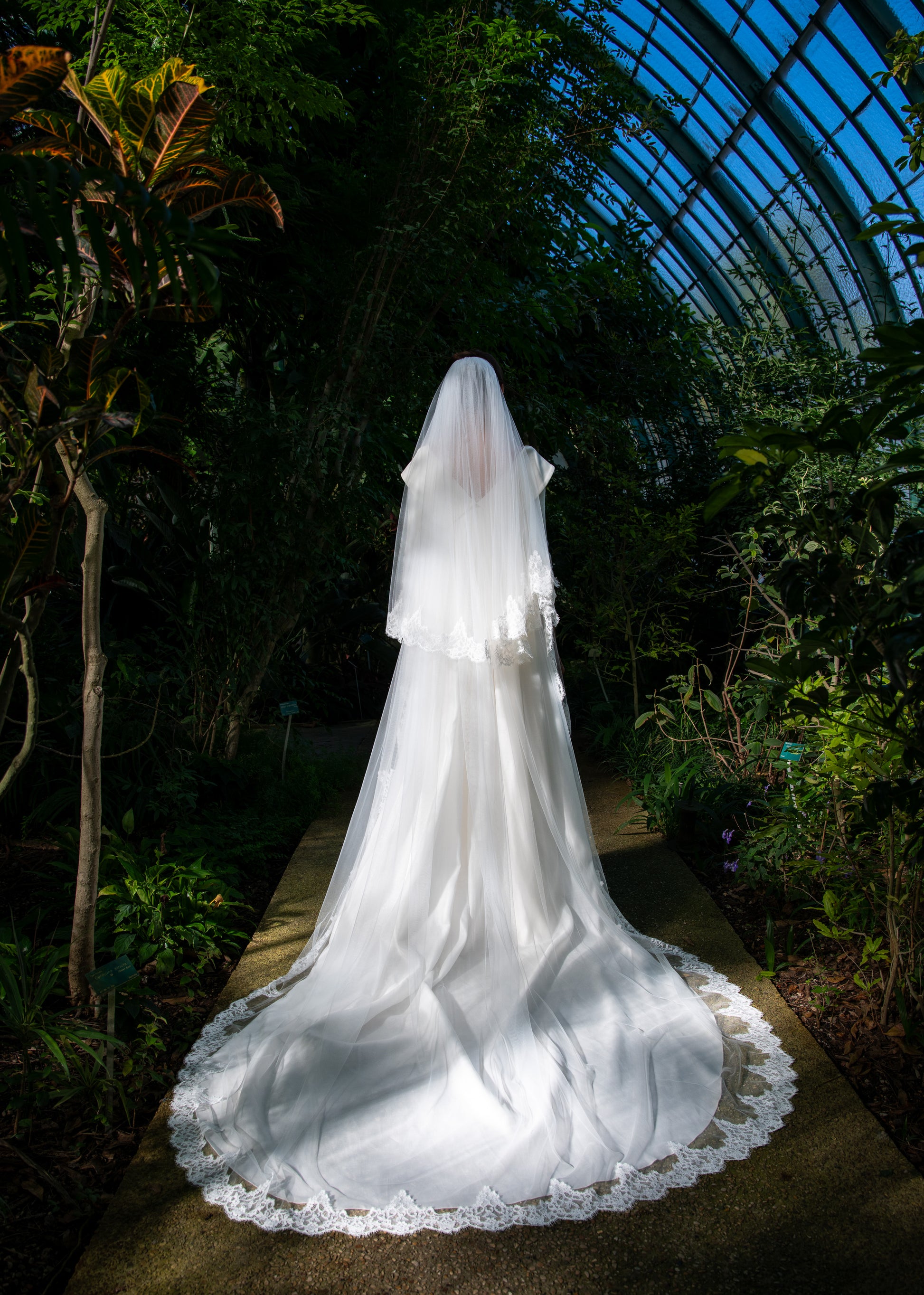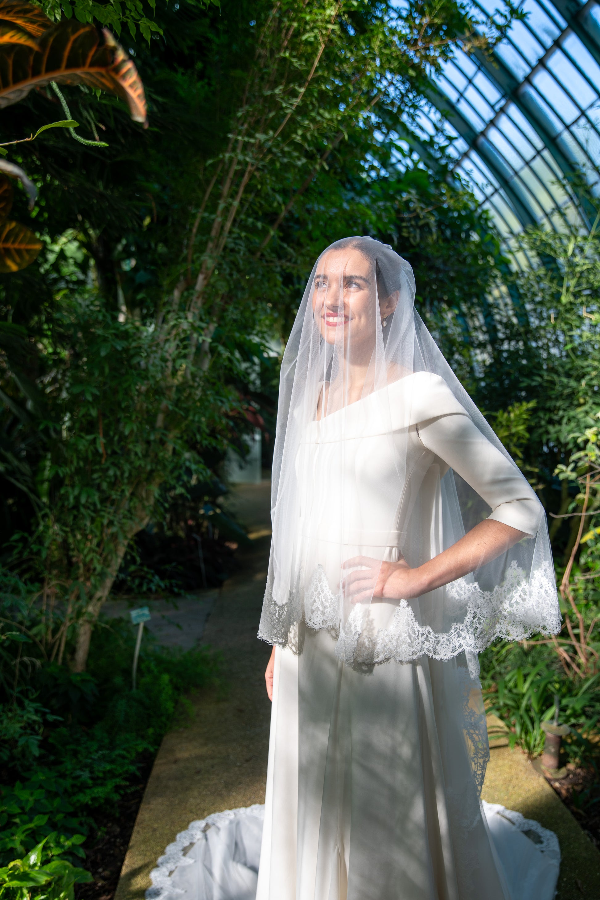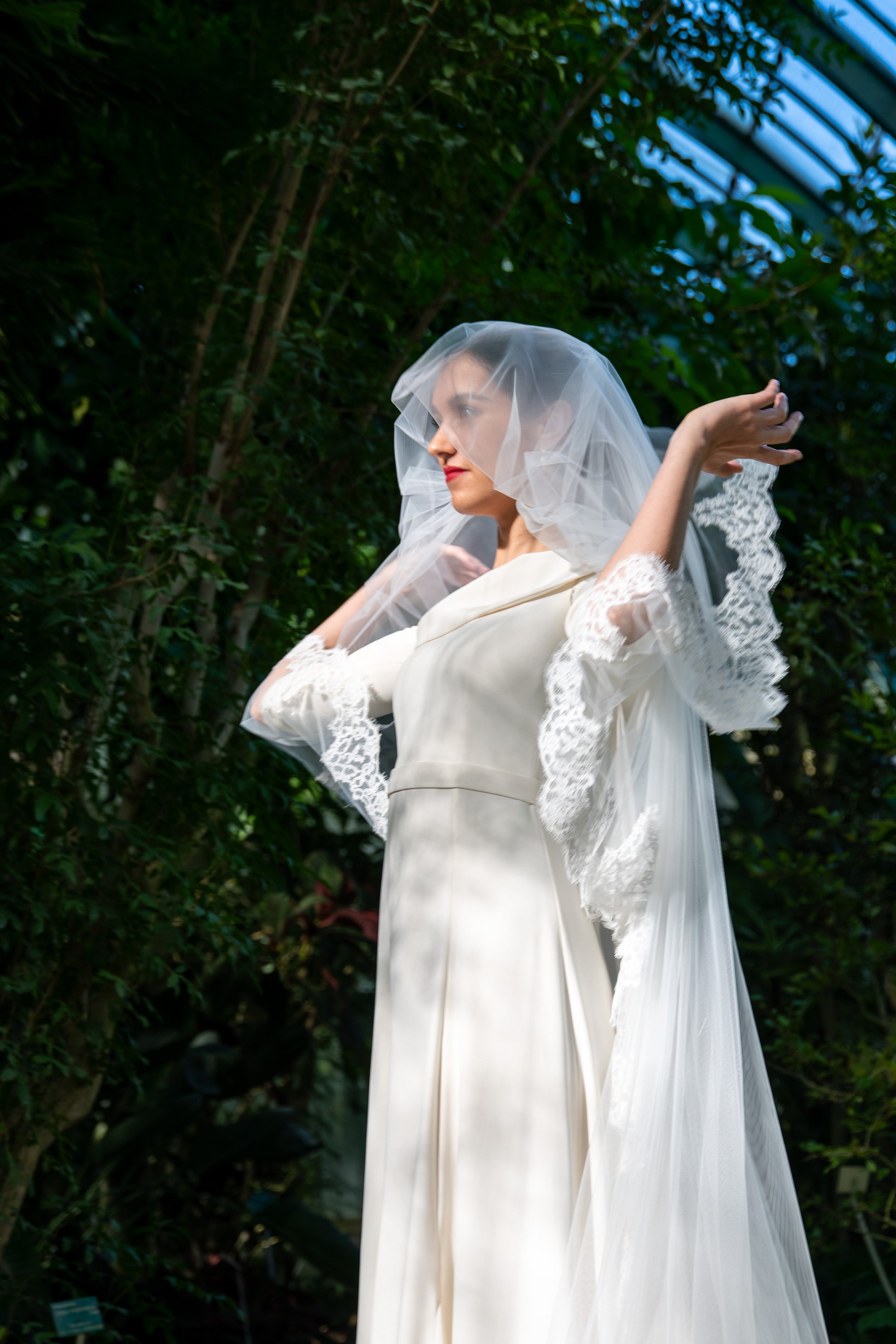 Voile avec retour en tulle souple bordé d'une bande de dentelle de Calais-Caudry.